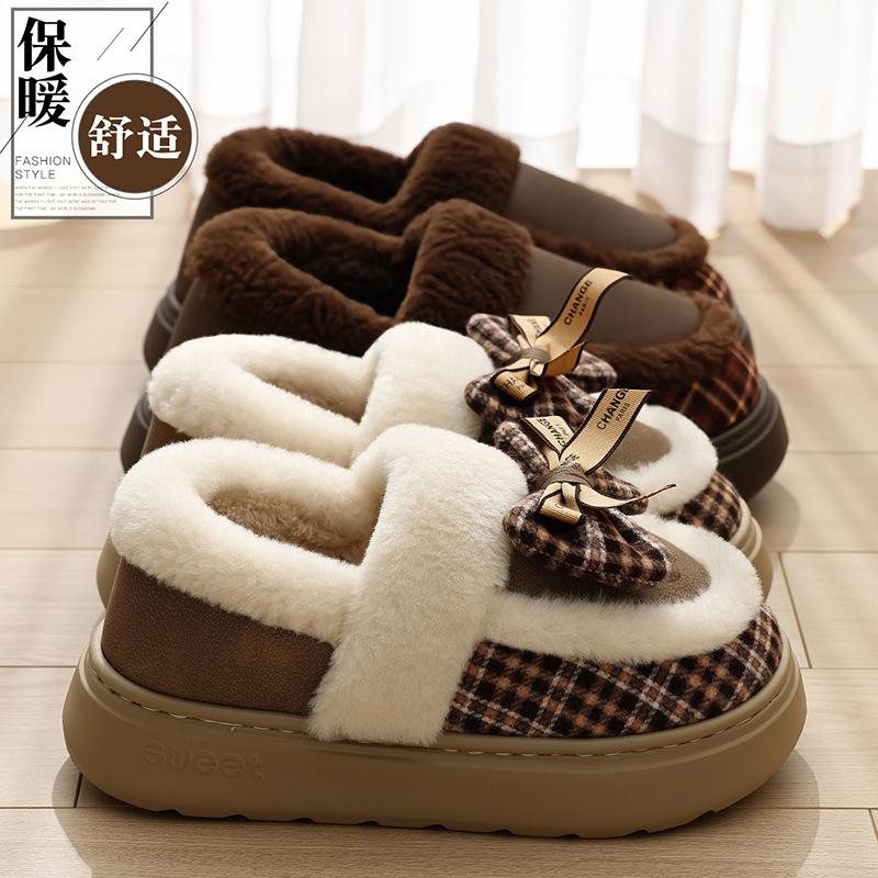 Schleife Baumwollpantoffeln Winter Cartoon Tasche und Baumwollmopp warme Plüsch rutschfeste weiche Sohle Baumwollpantoffeln
