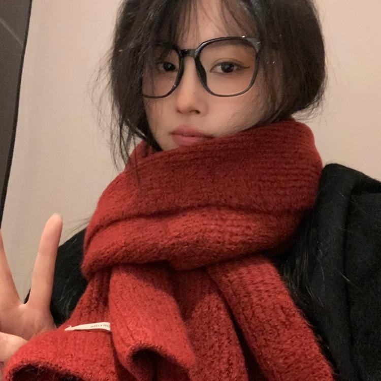 Scarf Women's New Winter Knitted Wool Scarf Red Korean Version Versatile High End Solid Color Warm Couple