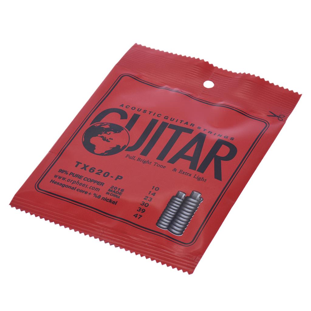 Orphee TX620 P Acoustic Folk Guitar Steel Strings 6pcs Full Set Replacement (.010 .047) High carbon Steel Core Copper