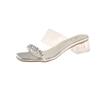 Französische coole Hausschuhe Damen Sommer Außenbekleidung ins Temperament mit modischen Strasssteinen transparent vielseitig Nische Zehenoffene Hausschuhe