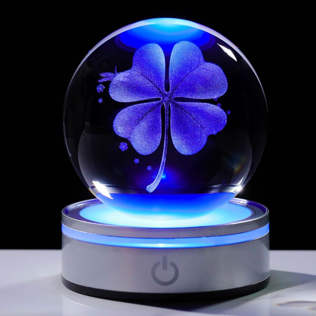 💝【3D-Lasergravierte Kristallkugel】💝Ein stilvolles "3D-vierblättriges Kleeblatt" ist in hochwertigen 3D-Kristall eingebettet, unter Verwendung einer Lasergravurtechnologie, die niemals verblasst. Die dreidimensionale Kunst im Inneren des Kristalls erstrahlt unter LED-Licht und erzeugt ein fantastisches Bild, das Ihre Seele beruhigen wird.. Die Farbe ist hell und warm, und die Textur ist natürlich.. Es das perfekte Geburtstagsgeschenk für Frauen!!!