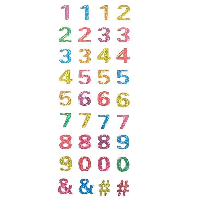 Stickers époxy pailletés - MEGACREA DIY - Chiffres et symboles - 36 pièces - Multicolore - H 1,4-1,5 cm