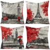Valentine's Day Pillow Printed Landscape Character Linen Short Plush Pillow Case Home Decoration Pillow Case