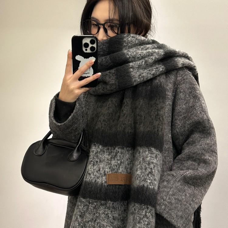 Scarf Women's Winter Solid Color Mohair Korean Style Versatile Student High End Thickened Warm Scarf New Style
