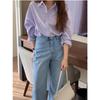 Women's Korean Style Taro Purple Pure Cotton Long Sleeve Shirt - Petite, Loose, Casual for Autumn and Spring