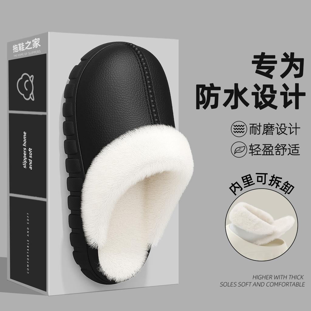 Baumwollpantoffeln mit Flansch Winter Tasche Kopf Paar Zuhause Indoor Weiche Sohle Rutschfest Samt Warm Wasserdichte Pantoffeln