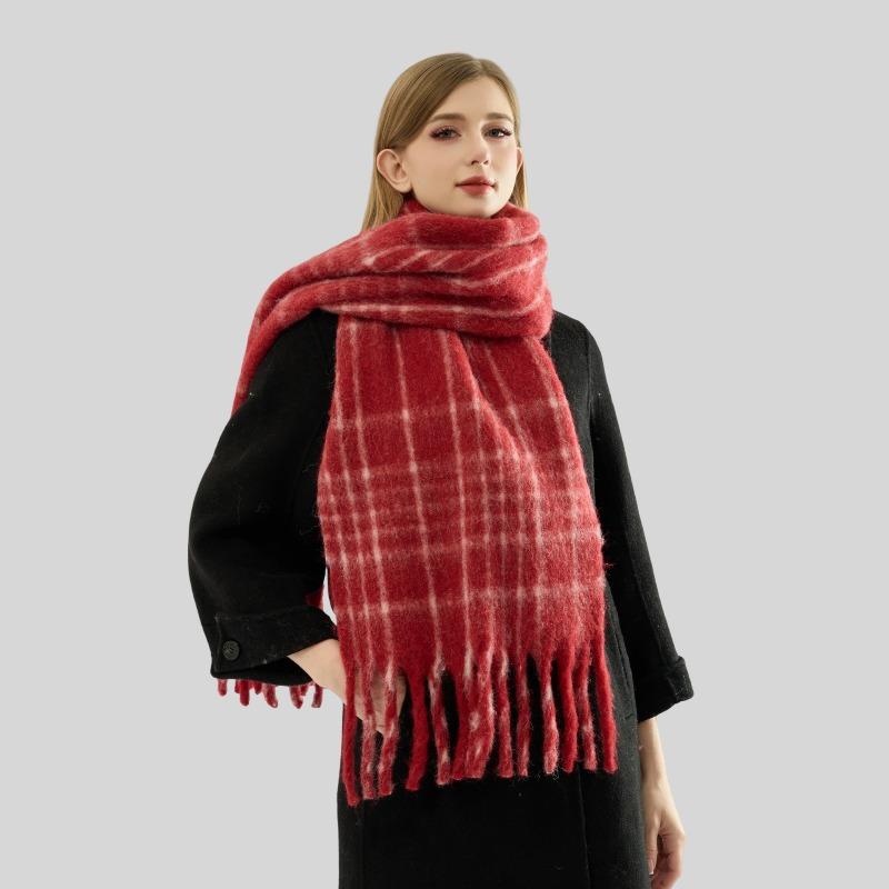 Wool blended high-end scarf Ankola red plaid scarf women's winter atmosphere versatile scarf