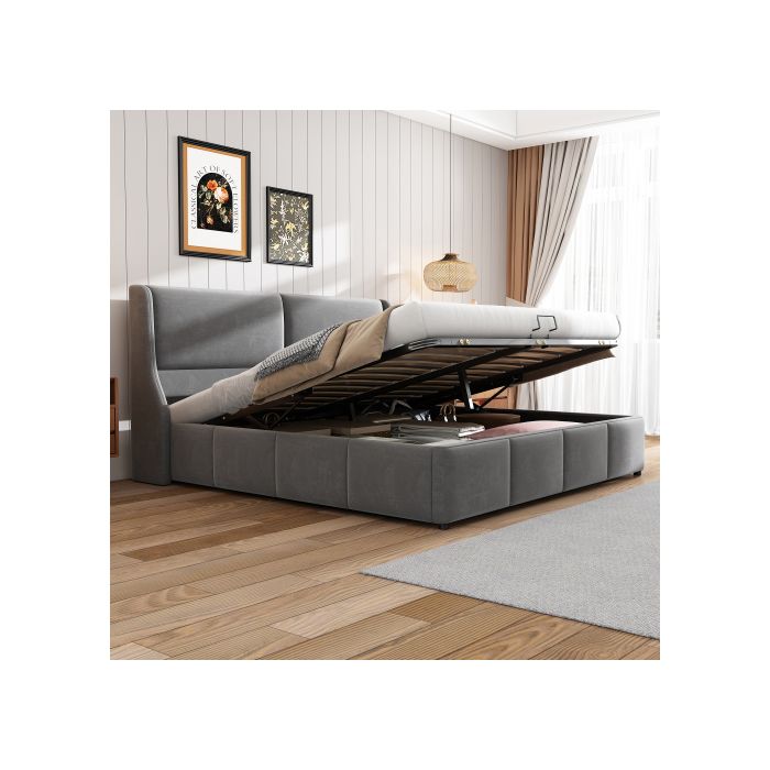 Lit rembourré,forme oreille,tête de lit,lit double,lit fonctionnel hydraulique,180 x 200,gris