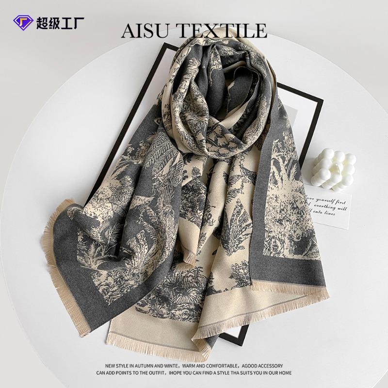 Scarf Women's winter imitation cashmere scarf High-end sense versatile retro long shawl Warm dual-purpose scarf