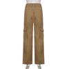 Damen Khaki High Waist Straight-Leg Denim Jeans mit Multi-Pocket-Design
