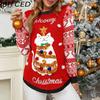 BITCED Autumn/Winter Jacquard Pullover Christmas Sweater with Cartoon Kitten Embroidery Red Knitwear