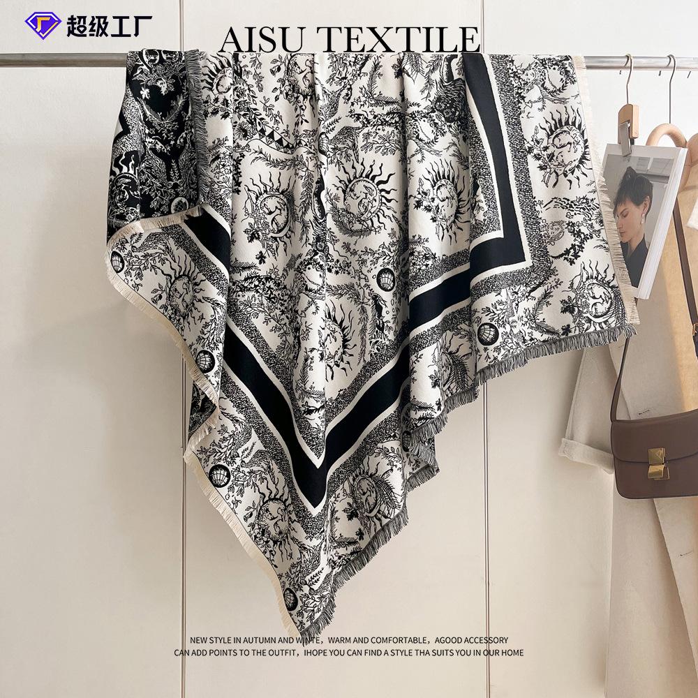 Neuer Kaschmir-Imitat-Schal, hochwertiger warmer Damen-Quadrat-Schal, schwarzes Sonnen-Smiley-Gesicht, Jacquard-Cape, Stola.