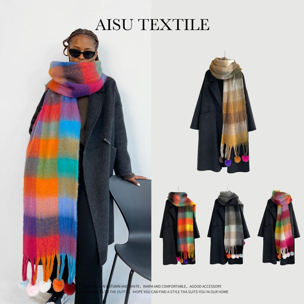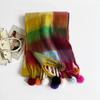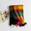 Fashion Trend Scarf Winter Scarf Rainbow Plaid Dopamine Stripe Handmade Hairball Shawl