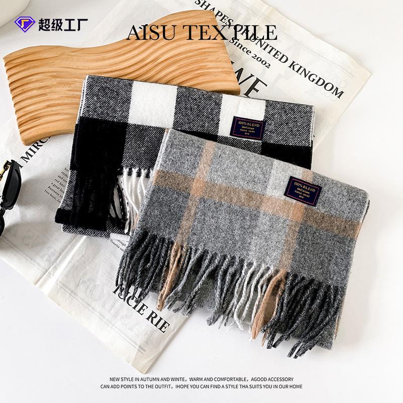 Classic scarf Men's winter imitation cashmere plaid scarf Warm shawl Tassel high-end scarf