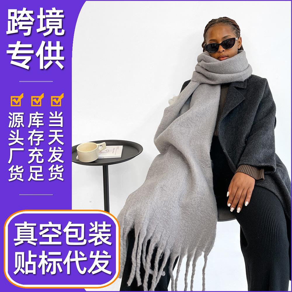 Solid color mohair scarf autumn and winter warm scarf vacuum packaging shawl women