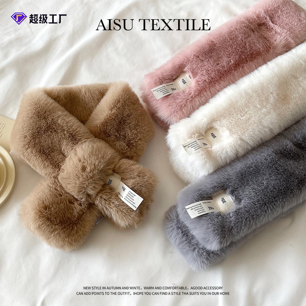 Ladies Winter Imitation Rex Rabbit Hair Scarf Double Sided Plush Thickened Scarf Ladies Warm Hair Neck Cover Shawl