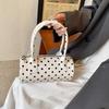 Elegante, zylinderförmige Umhängetasche mit schwarzen und weißen Polka-Dots, geflochtenem Henkel, Reißverschluss aus PU-Leder, vielseitiger Messenger Bag für Damen (CLE)