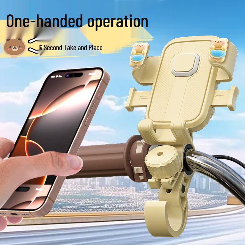 Elektrofahrrad mit niedlicher Cartoon-Handyhalterung und stoßfestem Navigationshaken.