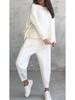 Entdecken Sie die perfekte Mischung aus Komfort und Stil mit diesem Damen-Sweatshirt- und Haremshosen-Set. Dieses passende Outfit aus hochwertigem Polyester verspricht sowohl Langlebigkeit als auch eine weiche Haptik.. Das Langarm-Sweatshirt hat ein unregelmäßiges Design, das Ihrer Freizeitgarderobe eine moderne Note verleiht.. Die passende Harems-Hose ist mit praktischen Taschen ausgestattet und bietet sowohl Funktionalität als auch Flair.. Perfekt für einen entspannten Ausflug oder einen mühelosen Lounge-Look, dieses Set vereint mühelos Mode mit Funktionalität.