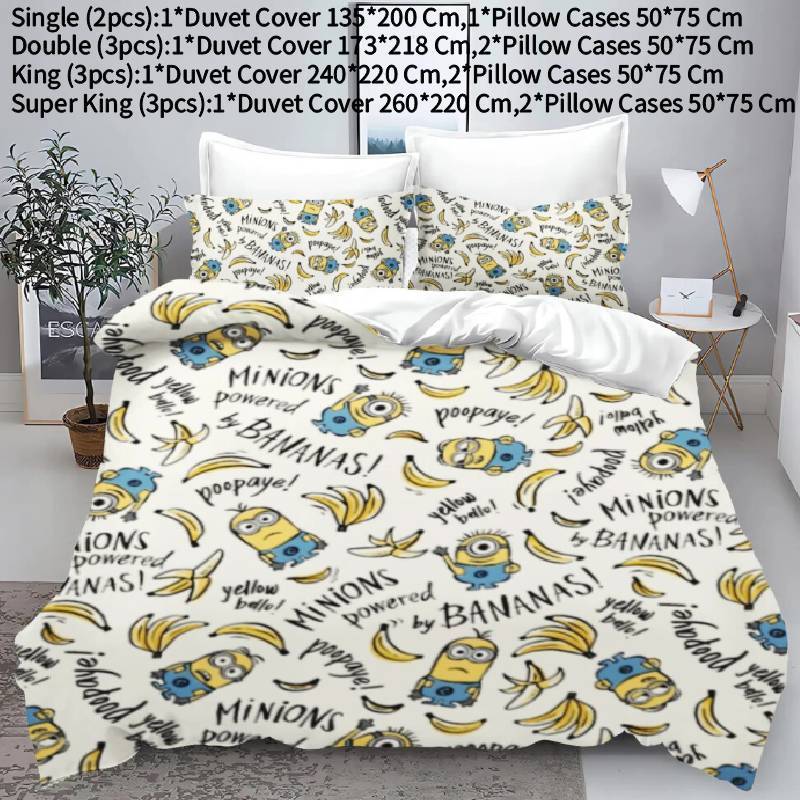 Minions Bettbezug Cartoon-Bezug und Kissenbezug Set Baumwolle Niedlich Bedruckter Bezug Steppdecke