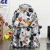 Kong Wu Graffiti Cartoon Lightweight Backpack With Multiple Pockets For Teens