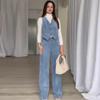 Herbst 2024 Damen Cord V-Ausschnitt Uni Weste & Hose mit geradem Bein Set