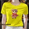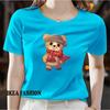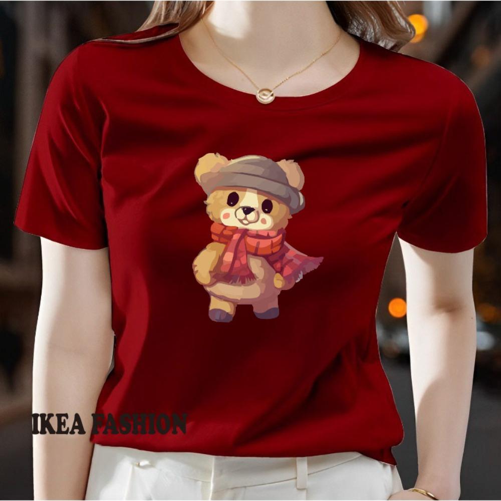 Ladies' casual short sleeved round neck T-shirt - cute cartoon bear pattern printed fashionable