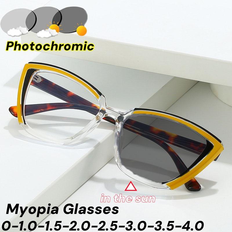 Retro Cat Eye Photochromic Anti Blue Light Myopia Glasses Ultra Light TR Fashion Near Sight Sunglasses Photochromic Lenses Women