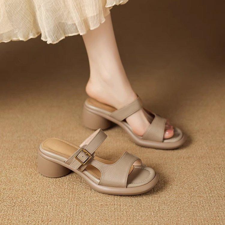 High-End Plattform-Slipper Damen Sommer 2025 neue Mode Outdoor Ein-Wort-Pantoletten vielseitige Zehensandalen mit dickem Absatz