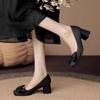 Schleife schwarz dicker Absatz High Heels Damen Herbst neu Temperament professionelle Arbeit Satin Einzelne Schuhe