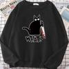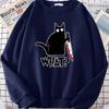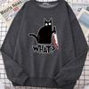 Küchenmesser Schwarze Katze Wha? Damen Sweatshirt Harajuku Casual Kapuzenpullover Mode Lockerer Hoodie Weich Warm Vintage Fleece Weibliche Oberteile