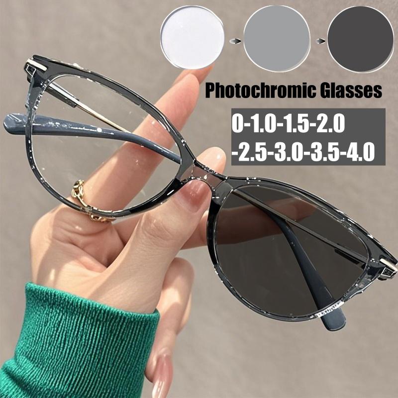Herren Damen Neue Mode Photochrome Myopiebrille Retro Cat-Eye Kurzsichtigkeitsbrille Farbwechsel Minus Dioptrien Sonnenbrille