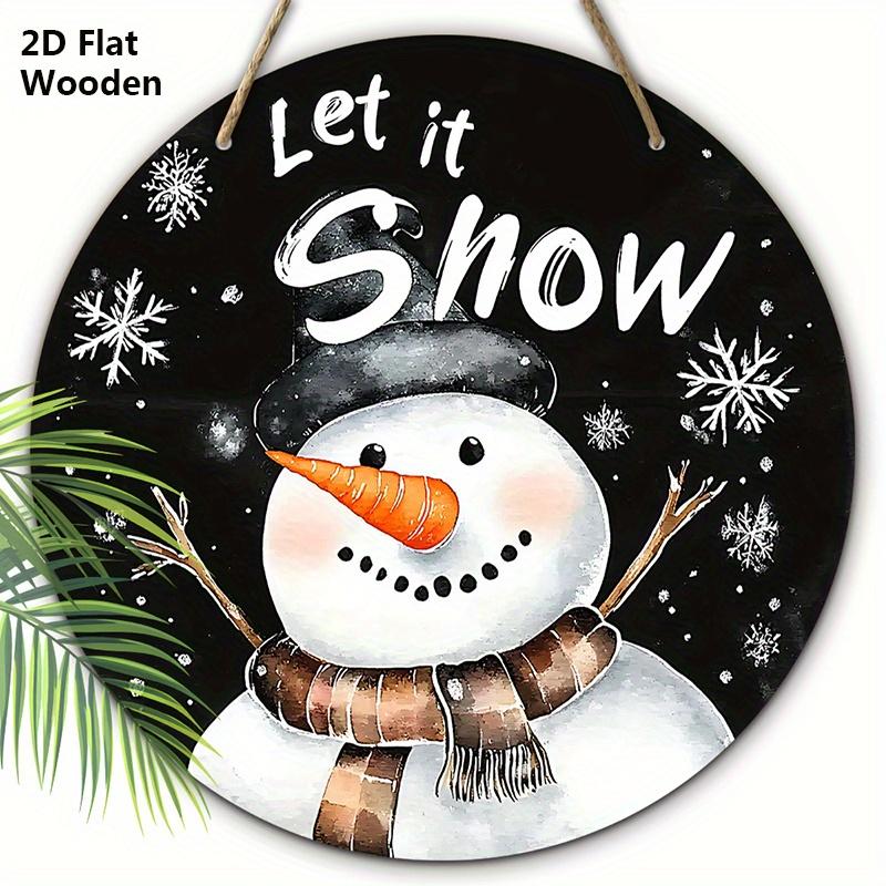 Weihnachts-Holzschild mit entzückendem Schneemannmuster - Rundes Schild "Let It Snow" für Haustür, Wandbehang-Dekor - Idealer Weihnachtsschmuck