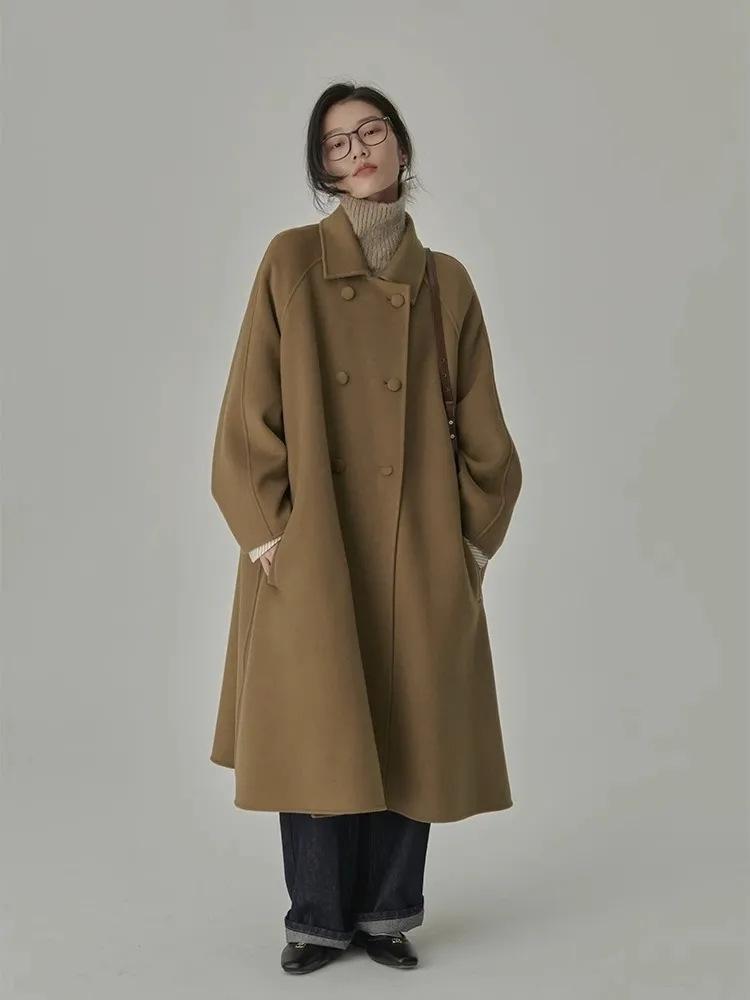 Damen Wollmantel in Hepburn-Stil - Herbst/Winter 2024, Verdickt & Elegant Japanisches Design