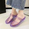 Damen Pantoletten Hausschuhe und Damen Sandalen Flache Jelly Slides Keilabsatz Schuhe Runde Zehen Einzigartig Bequem Elegant Hohe Qualität 39