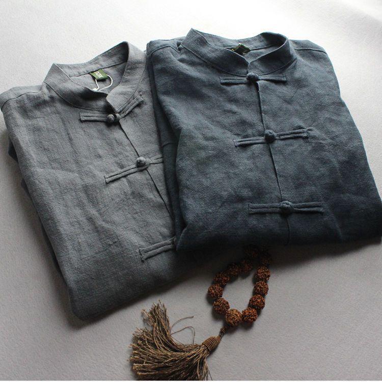 Herren Retro Leinenhemdjacke mit chinesischen Knöpfen – Große Größe für Frühling und Herbst