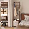 Solid Wood Bedside Table & Coat Rack with Storage Shelf – Indoor Bedroom Floor-Standing Clothes Rack
