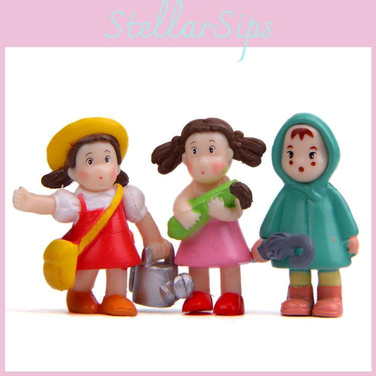 Neighbor My Totoro Anime Character Raincoat Holding Kettle Girl Ornament Model