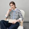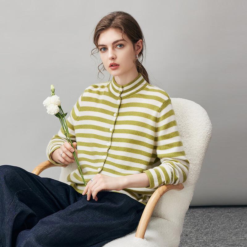 Komomboka Damen Gestreifter Kaschmir Cardigan mit Halbhohem Kragen