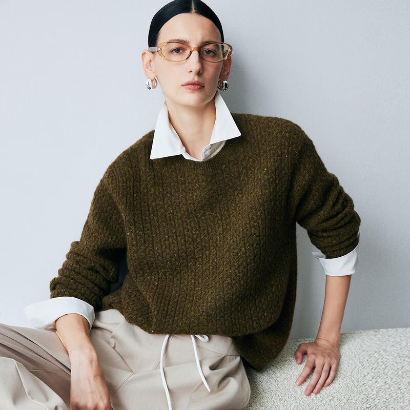 Palau Women's Retro Cable Knit Pure Cashmere Sweater