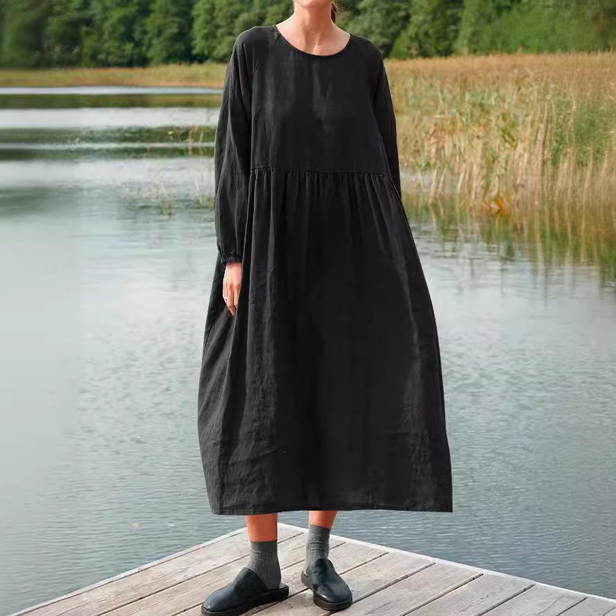 Herbst & Winter Rundhals Langarm Patchwork Kleid