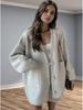 Damen Übergröße Hornknebel Strickjacke - 2024 Herbst/Winter Lockerer Oberbekleidungs Pullover Mantel