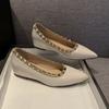 2025 Sommer neue Nieten flacher Mund vielseitig rutschfest nude spitz weiches Lackleder französisches Temperament Einzelne Schuhe Damenschuhe