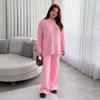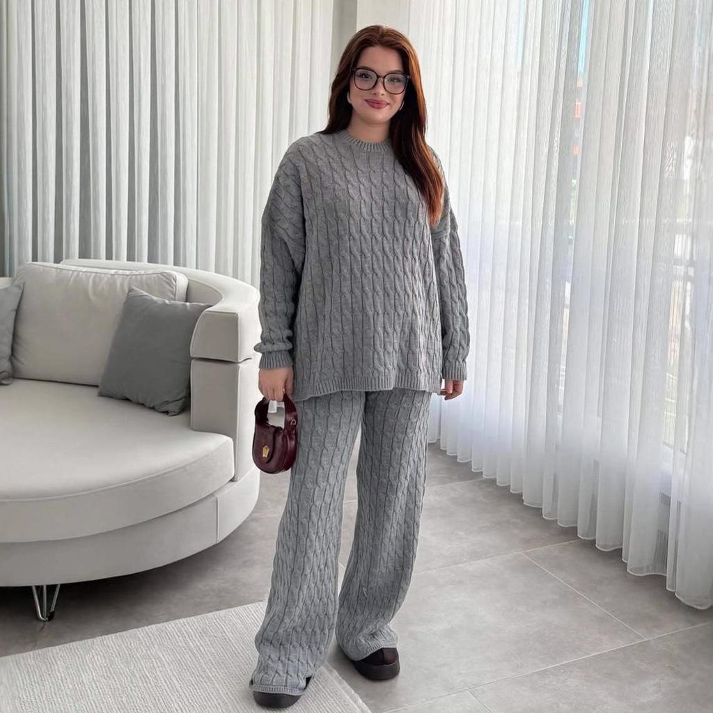 Entdecken Sie ultimativen Komfort und Stil mit diesem Strickpullover und der langen Hose für Damen, perfekt für die Herbstsaison.. Das Pelzmaterial, gefertigt aus einer Polyester-Spandex-Mischung, spendet Wärme und ein kuscheliges Gefühl.. Das durchgängige Muster verleiht einen Hauch von Eleganz, während der Rundhalsausschnitt und die langen Ärmel für einen klassischen Look sorgen.. Dieses vielseitige Set ist mit einem lockeren Schnitt gestaltet und eignet sich perfekt für jeden lässigen Anlass.