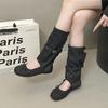 Nischendesign coole Stiefel Kinder 2025 neu Sommer Schleife Ballett plissierte Stulpenstiefel mittelhohe Stiefel