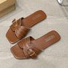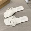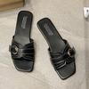 2025 Sommer Hausschuhe Damen Outdoor Nische Diagonalschnitt Quadratische Spitze Glänzende Linie Gürtelschnalle Flache Sohle Coole Hausschuhe Vielseitig