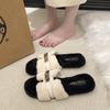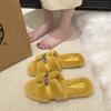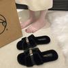 2025 neue flauschige Hausschuhe Damen tragen flache Sohle Samt Internet-Berühmtheiten rutschfest Wortkreuz Metallschnalle Retro Baumwollmopp