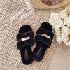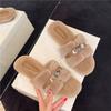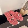 2025 Herbst- und Wintermode einfache Gürtelschnalle Internet-Berühmtheit flauschige Hausschuhe Damenbekleidung lässige dicksohlige Ein-Wort-Baumwollschuhe