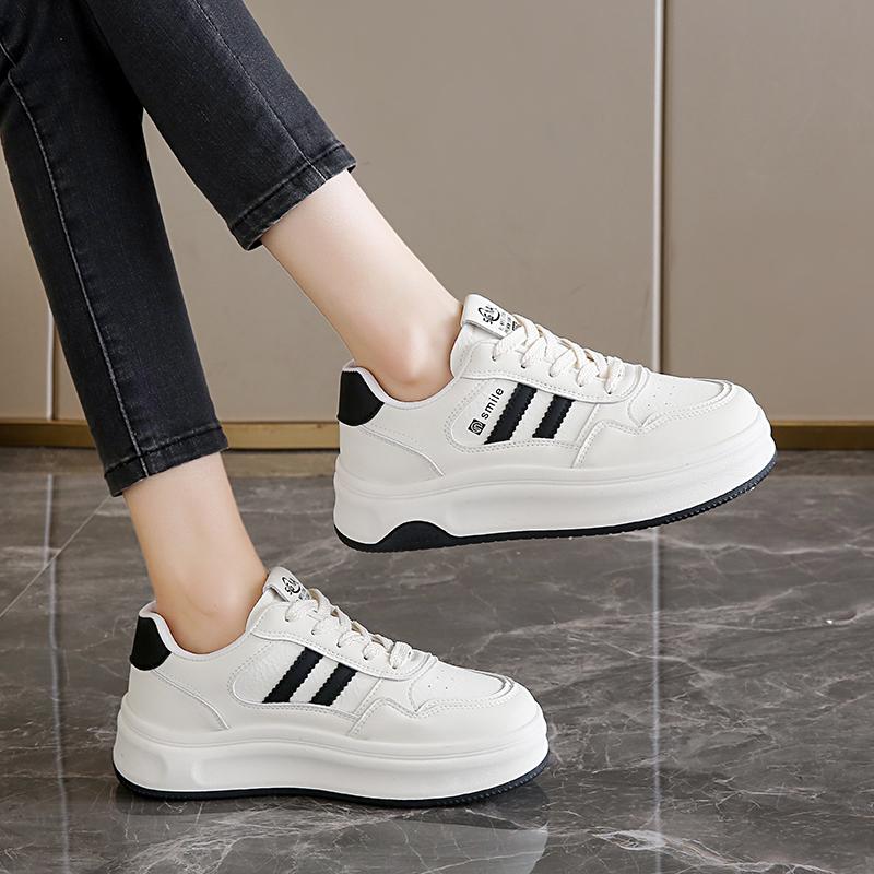 CRLAYDK Klassische Damen-Sneaker Bequeme Lässige Skateboarding Walking Low Top Schuhe Plateau PU-Leder Weiß Sport Tennis