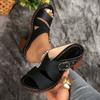 Große hohle Damen-Retro-Keilabsatz-Hausschuhe mit dicker Sohle, leichte, coole Strandhausschuhe